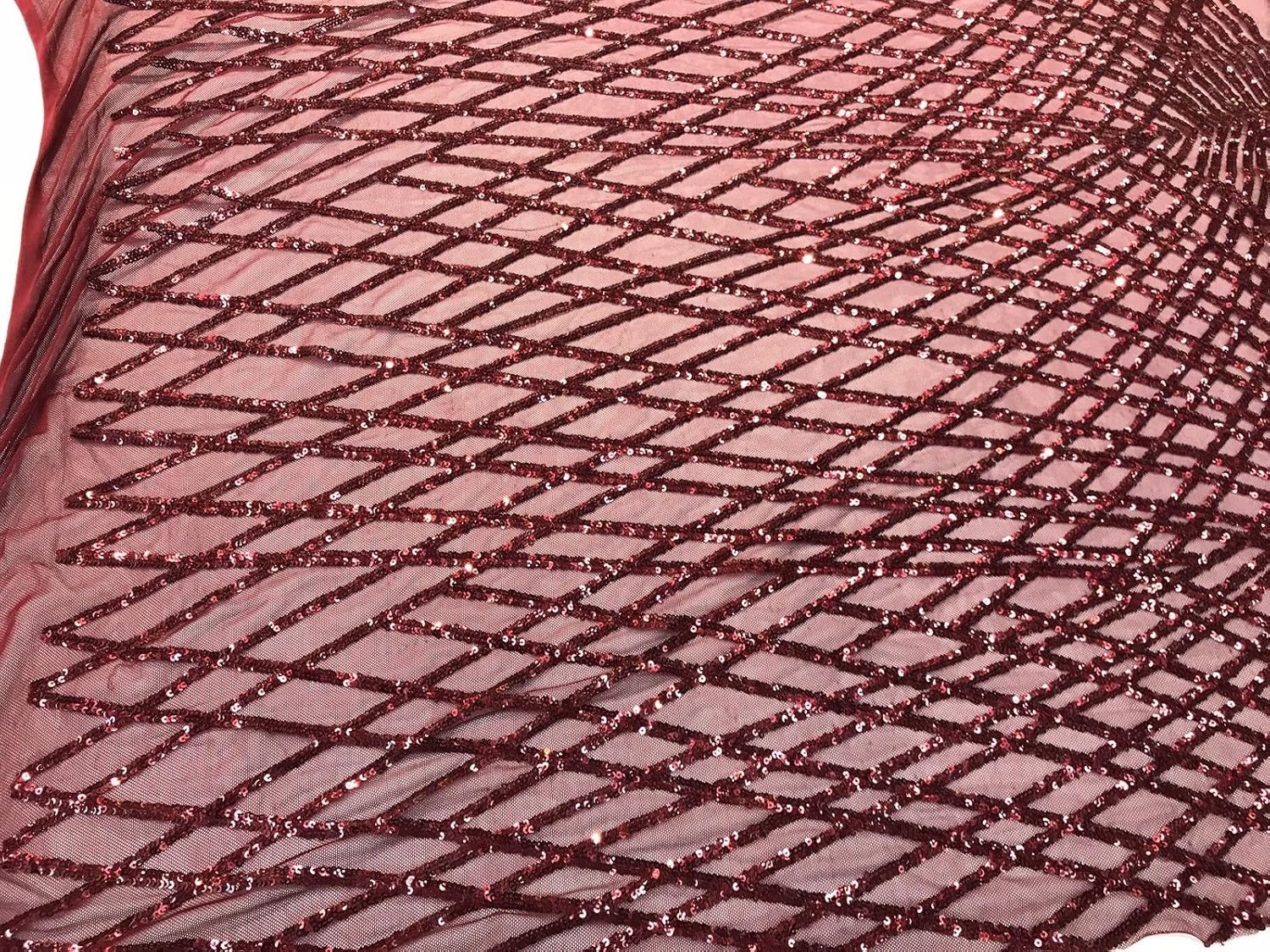 This GEOMETRIC DIAMOND design is embroidered with silver Sequins on a 4 Way Stretch mesh fabric. The burgundy Sequins has especial and extraordinary design on the Mesh . It is super elegant and classy, The royalty design embroider with iridescent Sequins on a mesh can be use for dresses, tablecloths, night gowns, Skirts, prom dresses, wedding dresses, runners for tables,decoration and much more.Dear costumes please feel free to ask us, how much we have in stock on any item you want to purchase, do to the high volume of item in my store I don't put too much on my quantity box, but I do have a good stock on my items .100% polyesterLength:36 inchesWidth:48-50 inchesWe also sell increment of yards in one piece.Dear costumer the shipping of this item may take 3-5 day.After shipping your item it may take up to 4-10 days for you to receive your item.Excluding holidays and weekends ..Exported By ExportYourStore